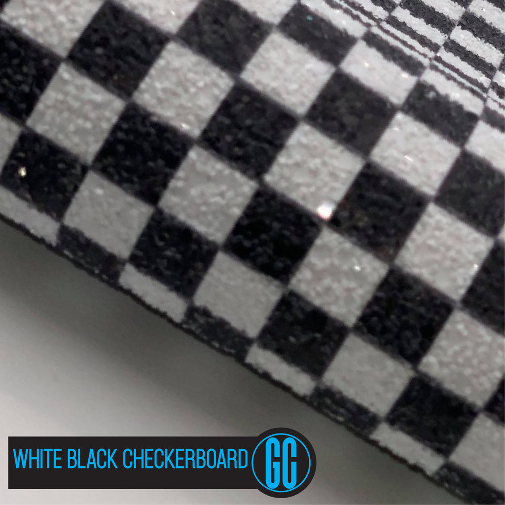 A4 Size White & Black Checkerboard Printed Glitter Fabric.