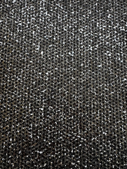 A4 Chunky Silver Micro Black Polka Dots Glitter Fabric