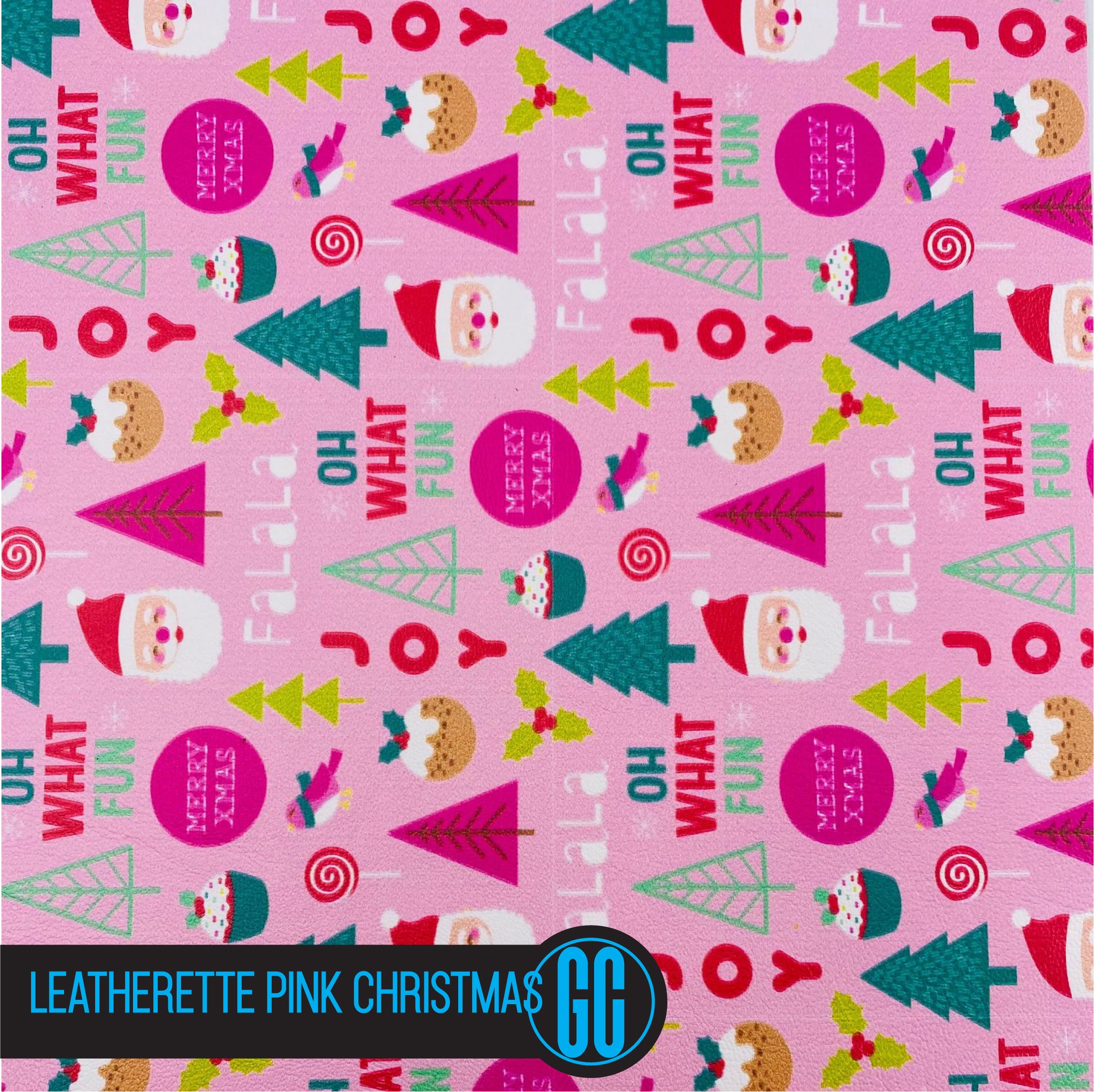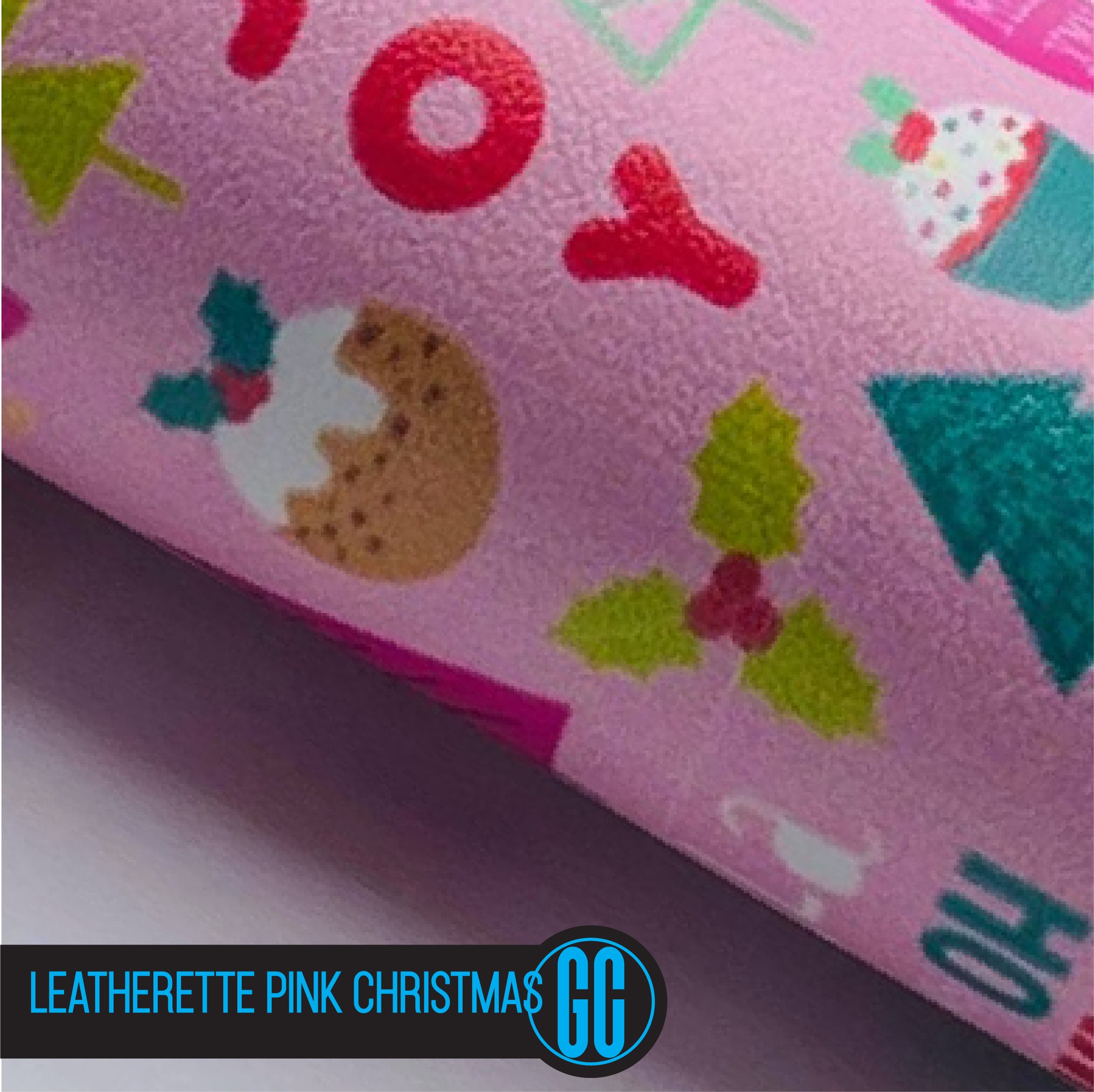 100% Cotton backed Leatherette Pink Christmas Printed Glitter Fabric. Available in A4 Size.