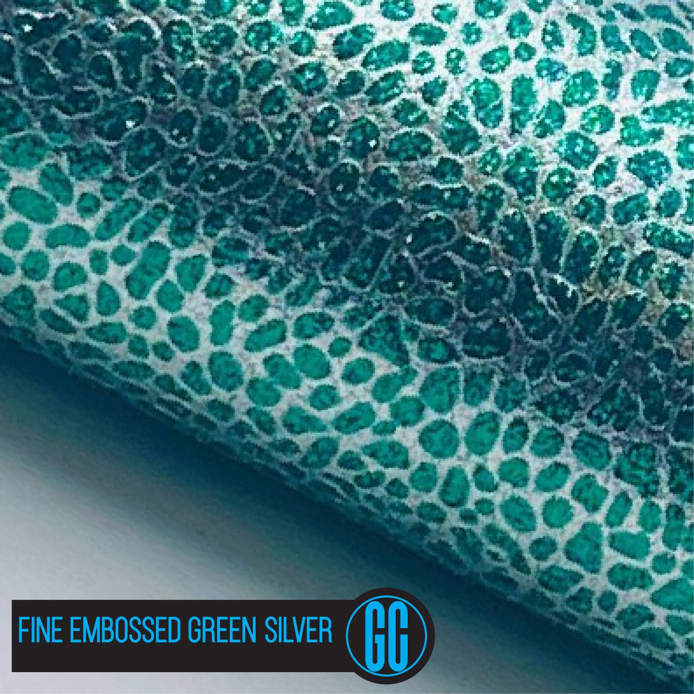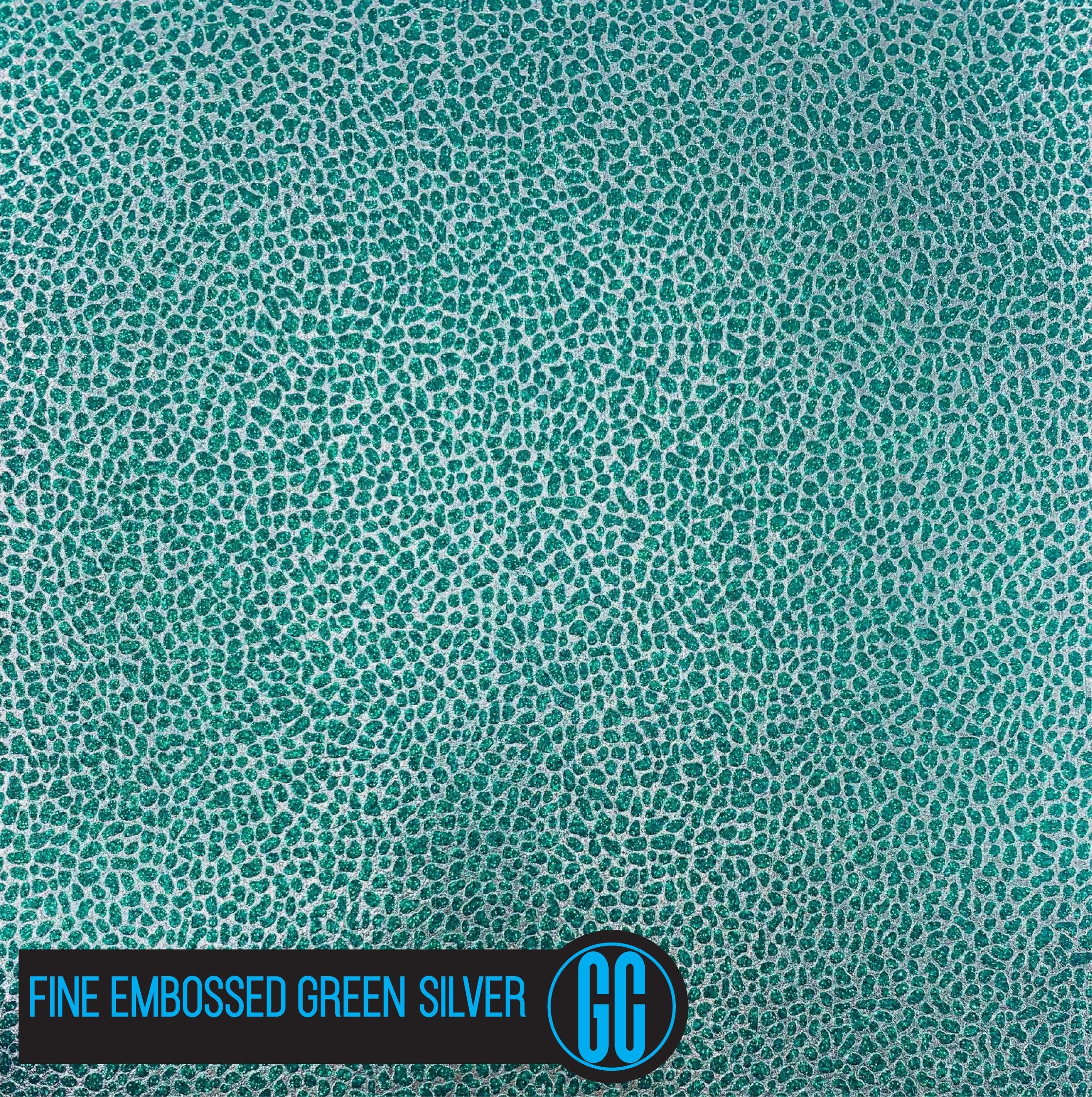 100% Cotton backed Fine Embossed Green/ Silver Glitter Fabric. Available in A4 Size.