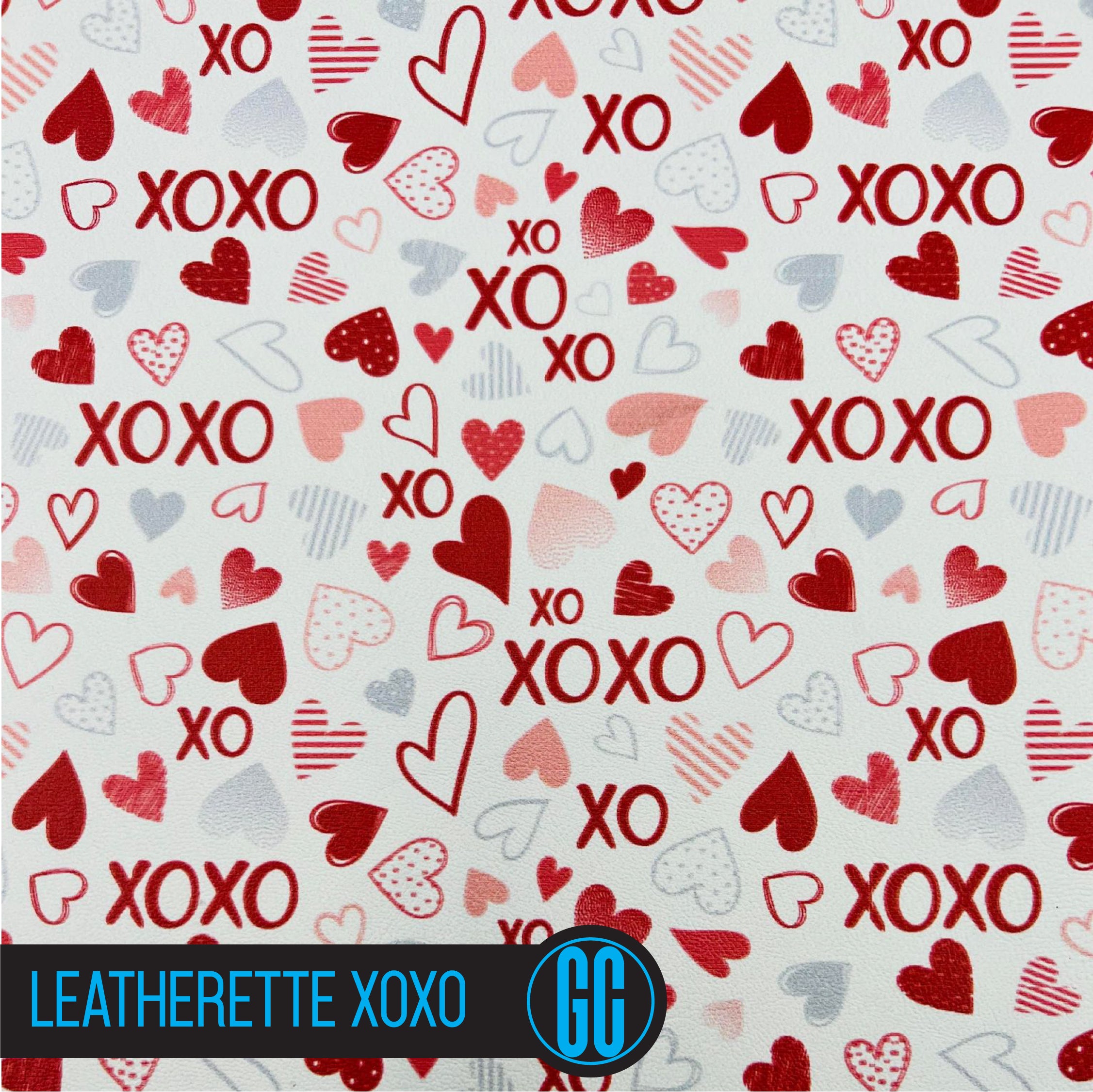 100% Cotton backed Leatherette XOXO Printed Glitter Fabric. Available in A4 Size.