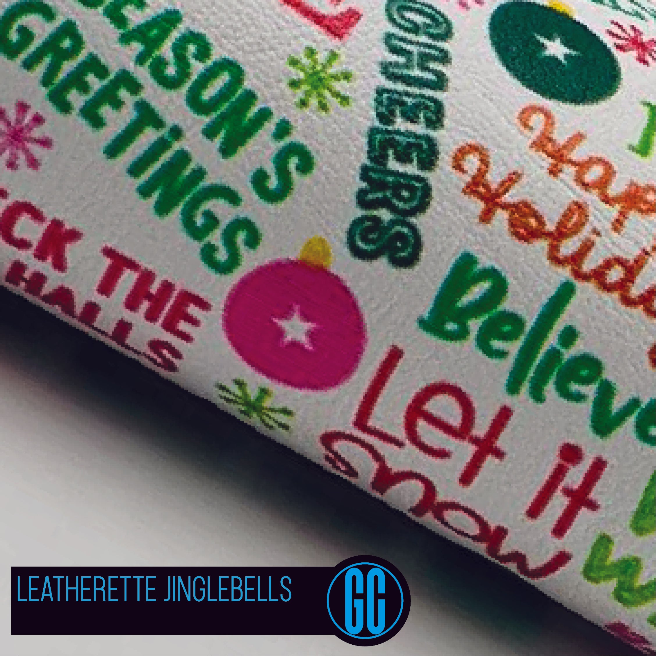 100% Cotton backed Leatherette Jinglebells Printed Glitter Fabric. Available in A4 Size.