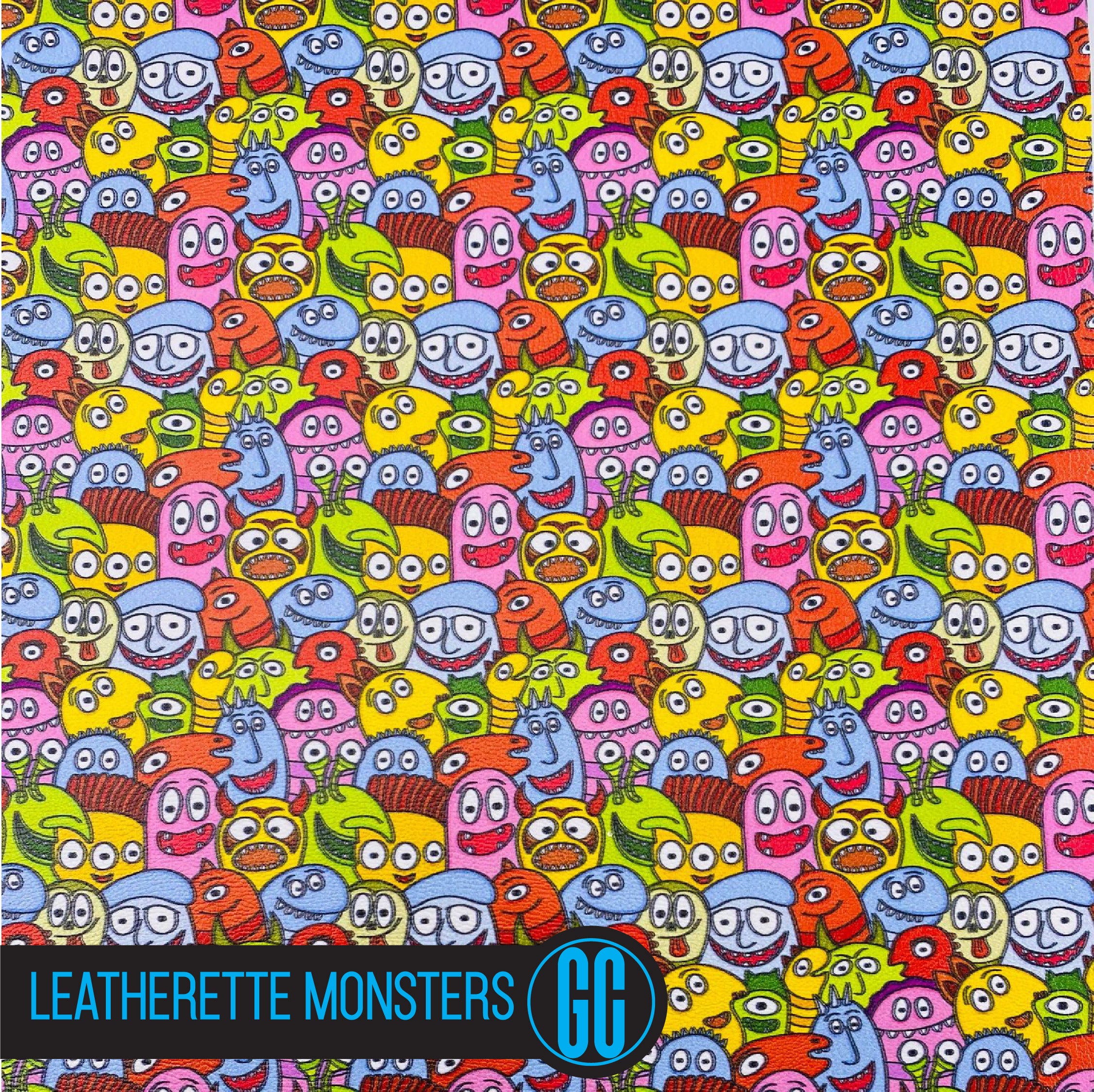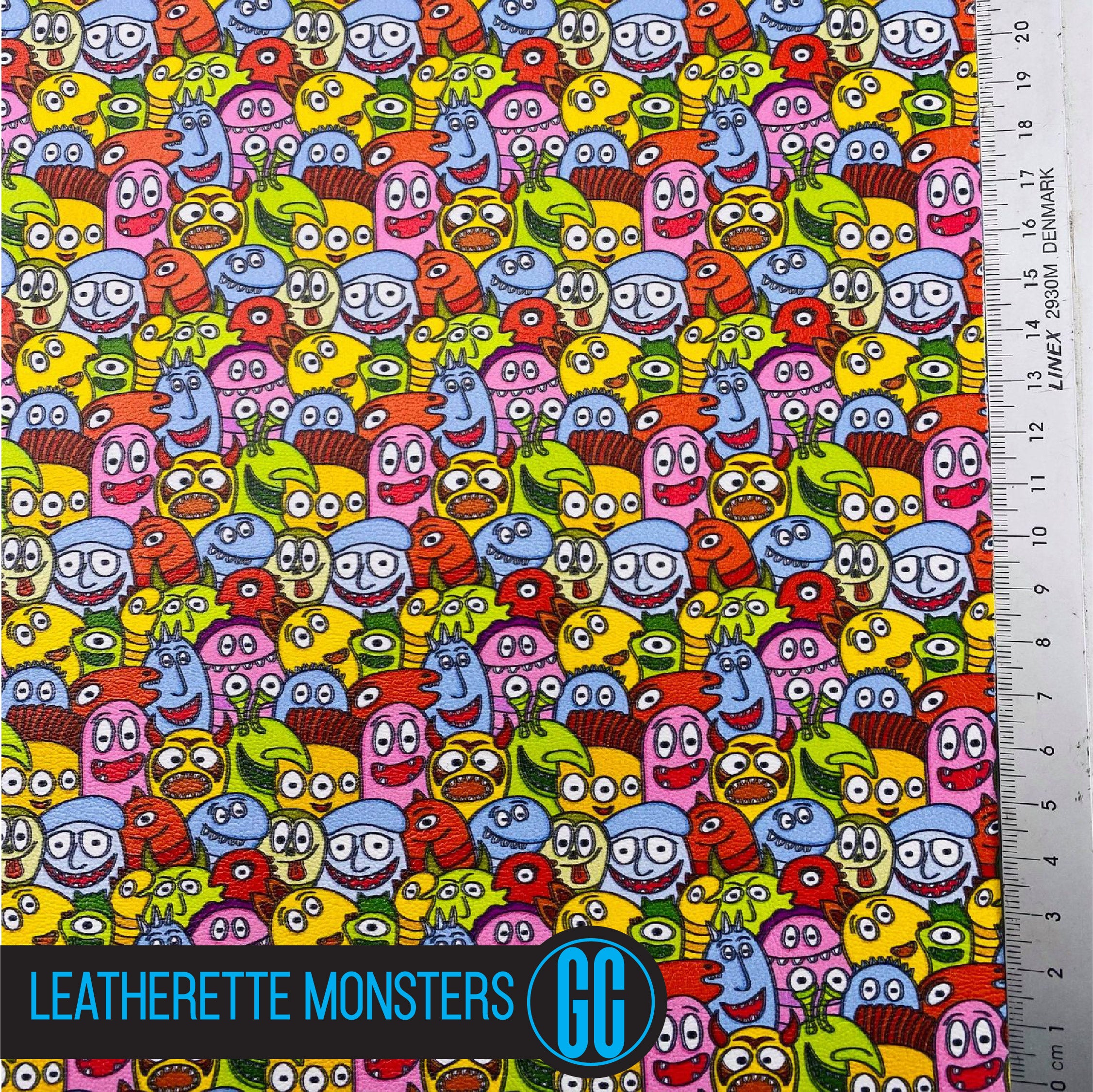 White Leatherette with Little Monsters Pattern. Available in A4 Size.