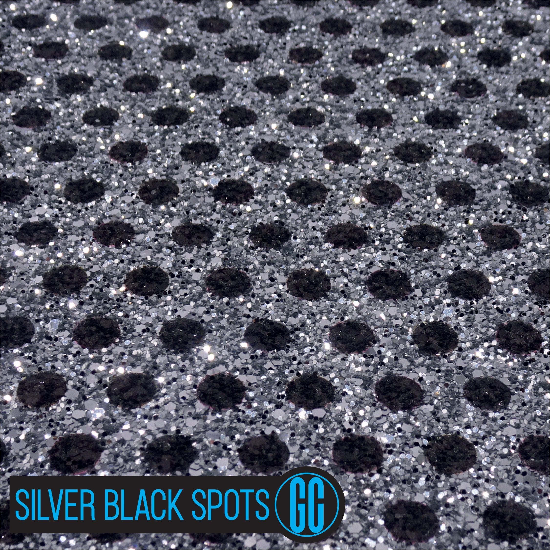 A4 Chunky Silver Black Polka Dot Glitter Fabric