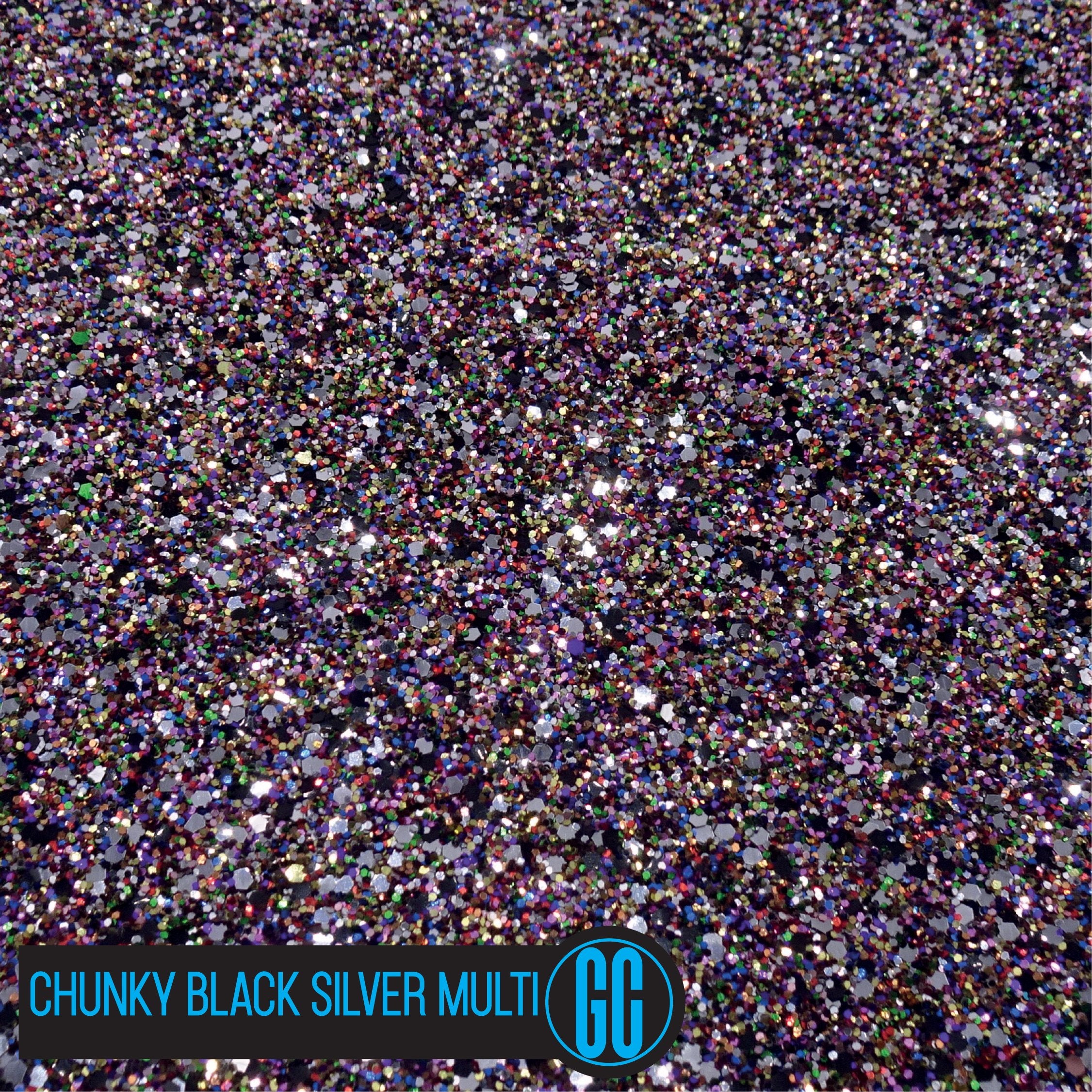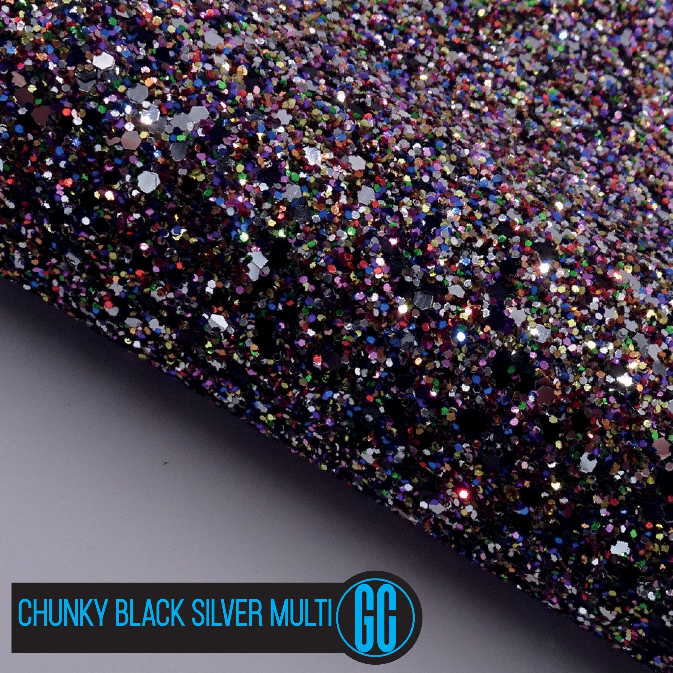 A4 Size Chunky Black / Silver Multi Glitter Fabric