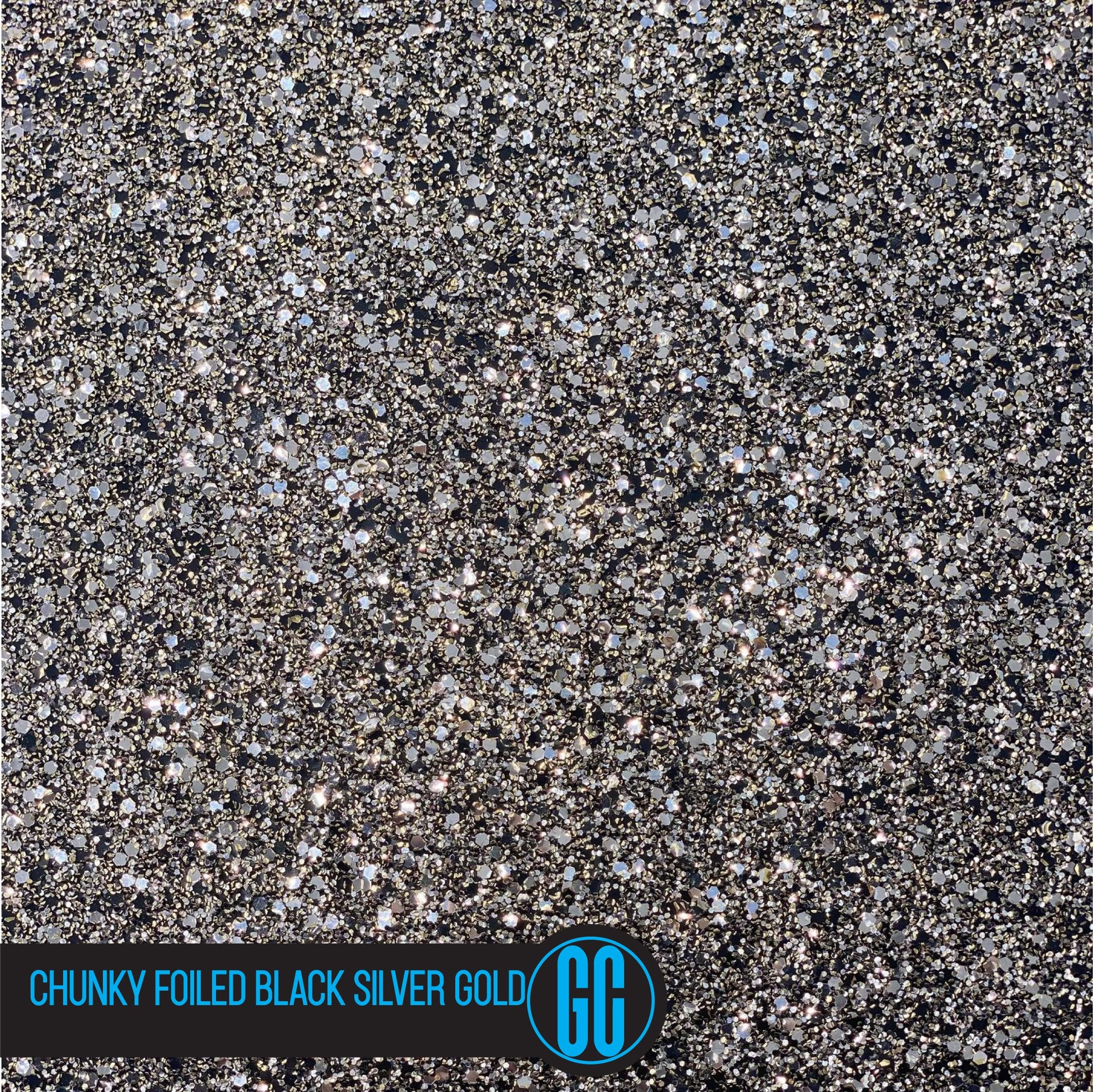 BLACK FRIDAY - A4 Size Chunky Foiled Black-Silver / Gold Multi Glitter Fabric