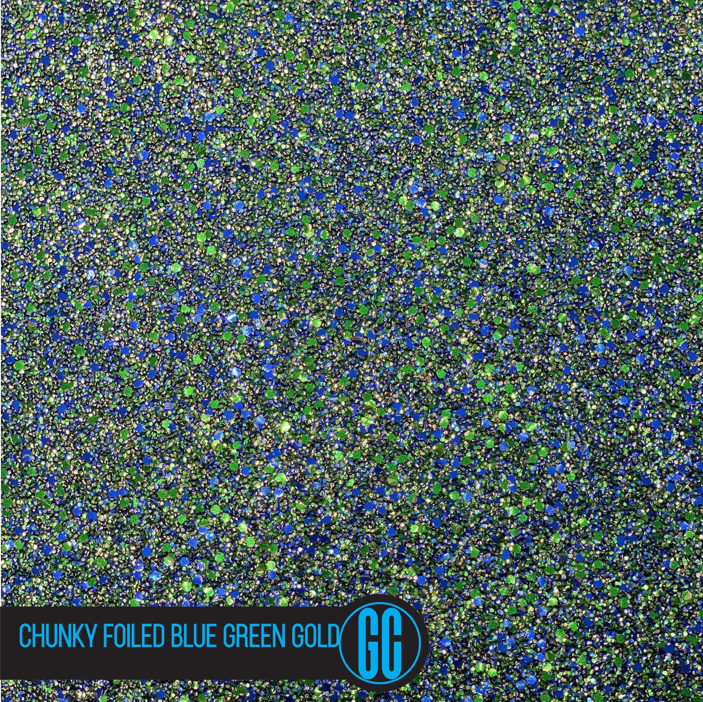 BLACK FRIDAY - A4 Size Chunky Foiled Blue - Green / Gold Glitter Fabric