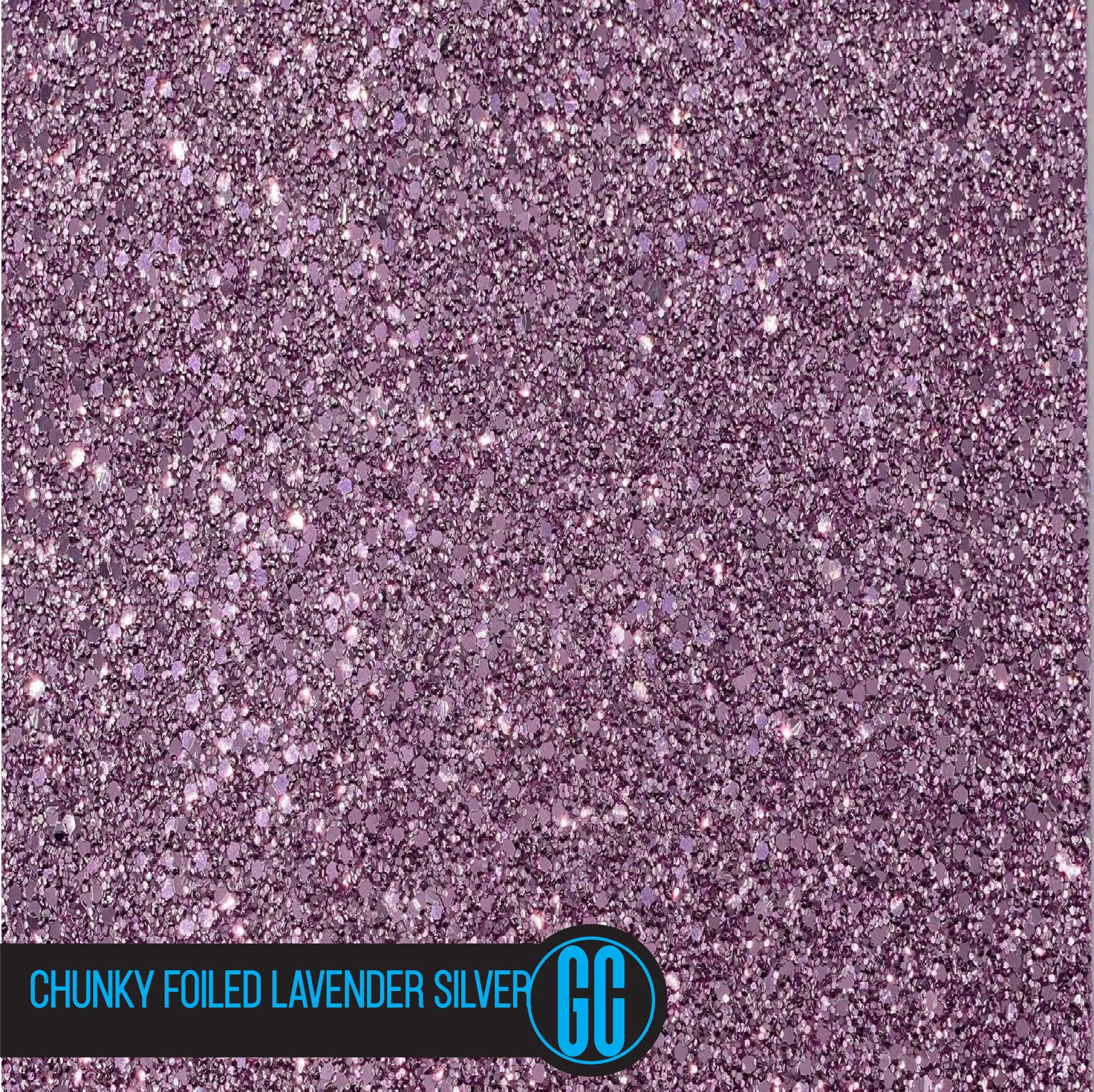 100% Cotton backed Chunky Foiled Lavender / Silver Glitter Fabric. Available in A4 Size.