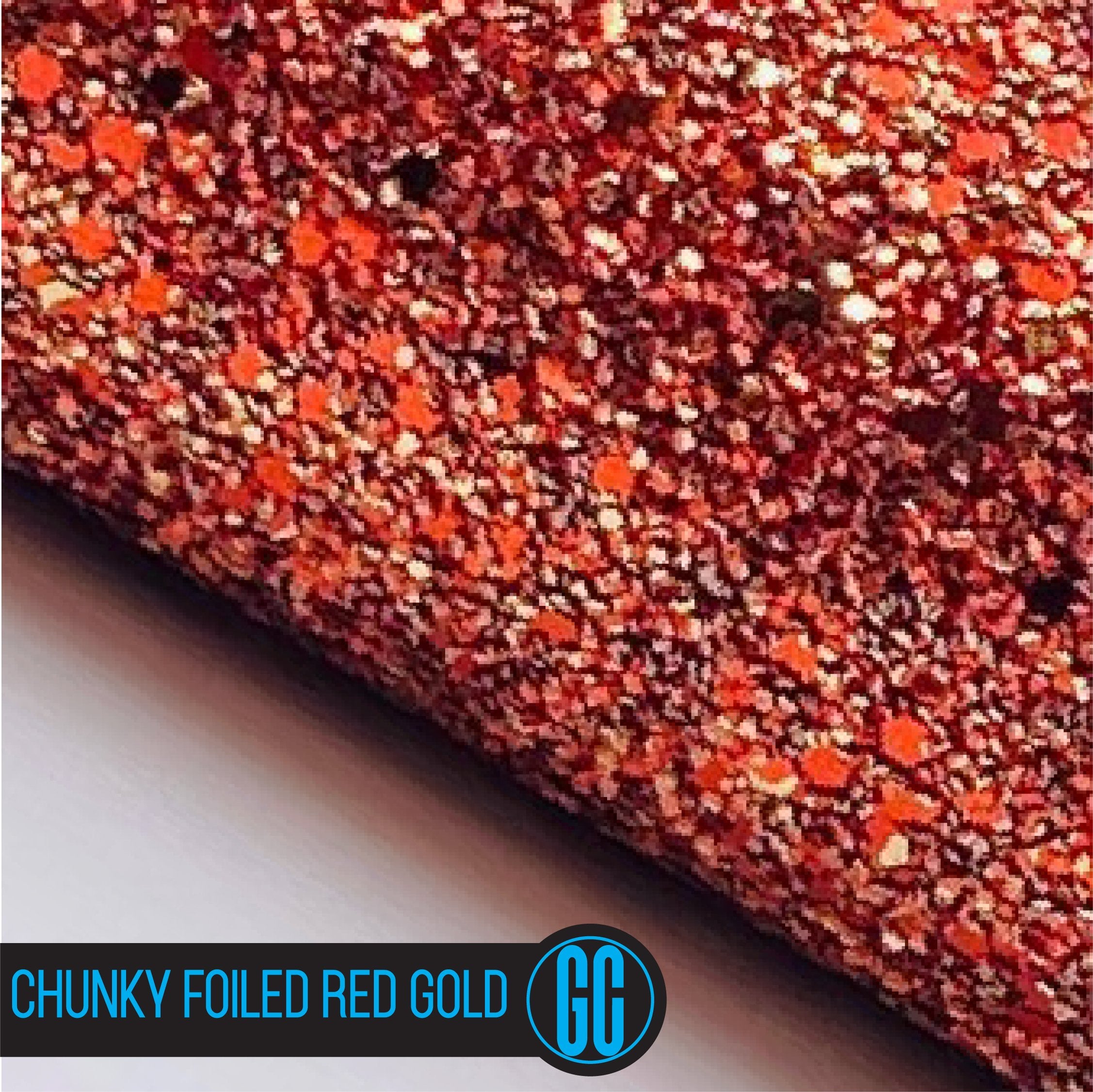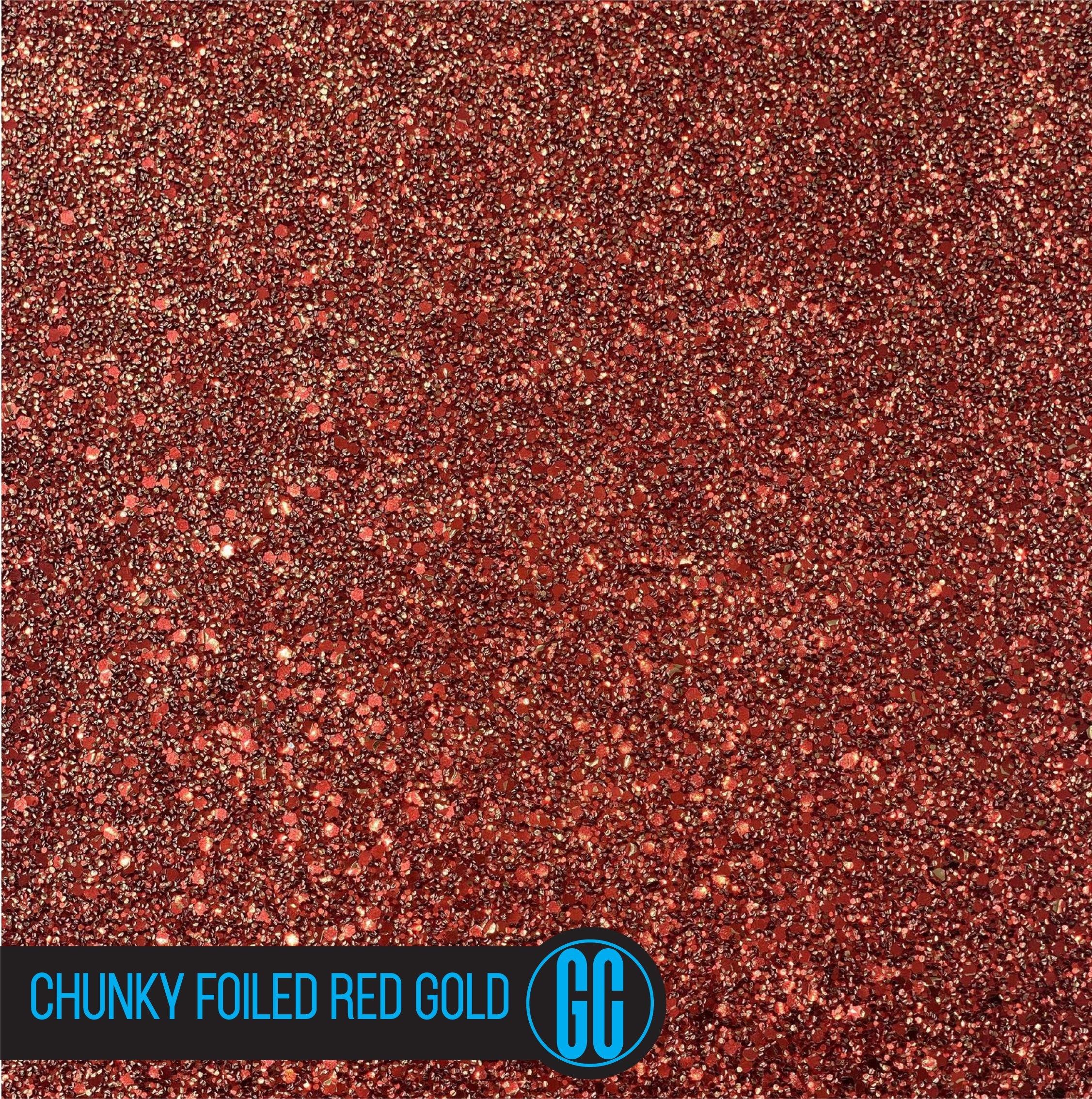 100% Cotton backed Chunky Foiled Red /Gold Glitter Fabric. Available in A4 Size.