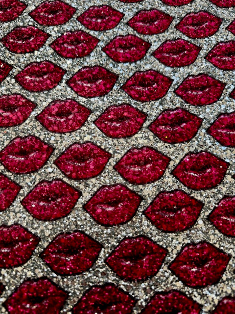 100% Cotton backed Chunky Silver Kiss Pattern Glitter Fabric . Available in A4 Size.