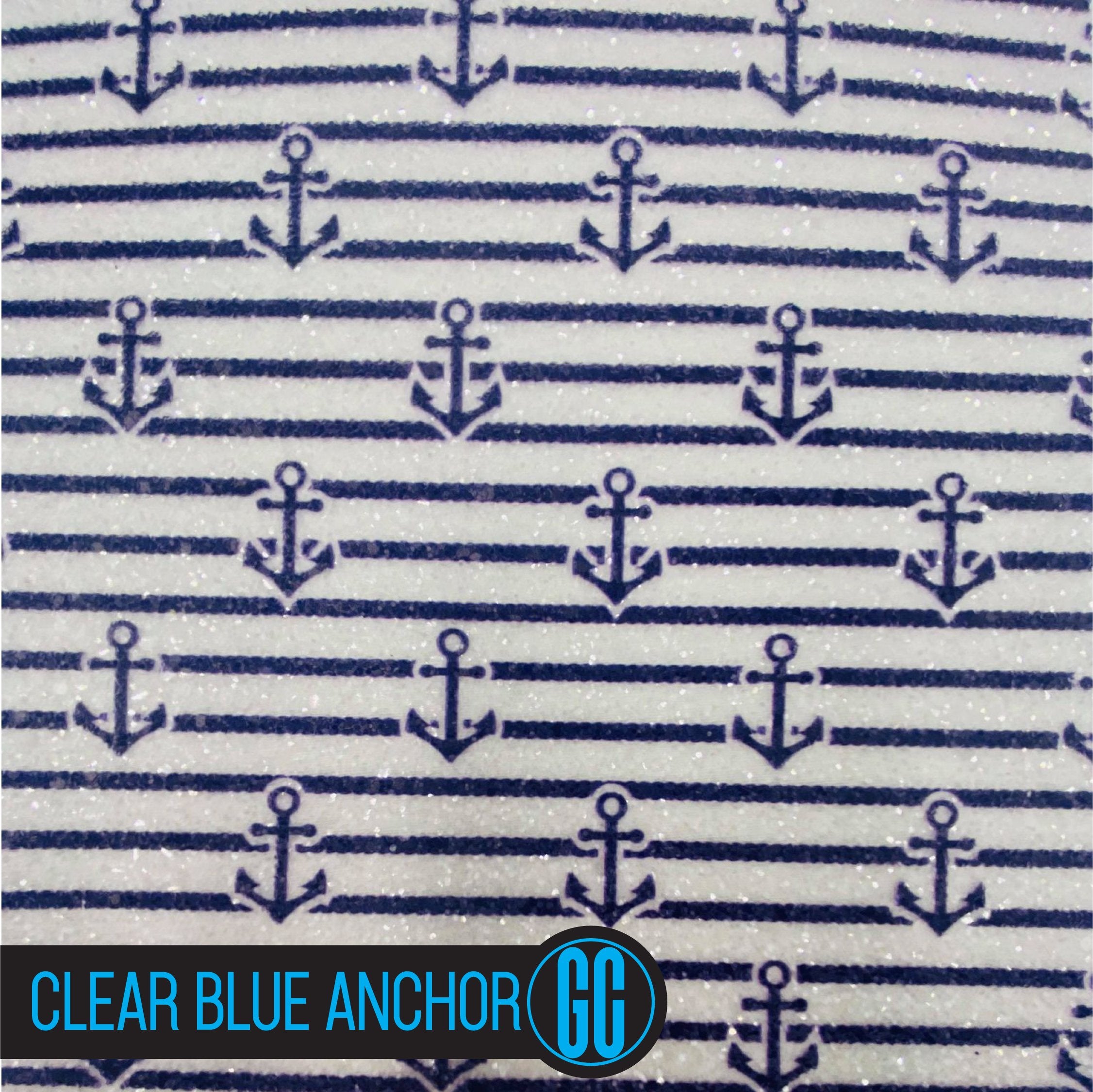 BLACK FRIDAY - A4 Size Clear Blue Anchor Printed Glitter Fabric