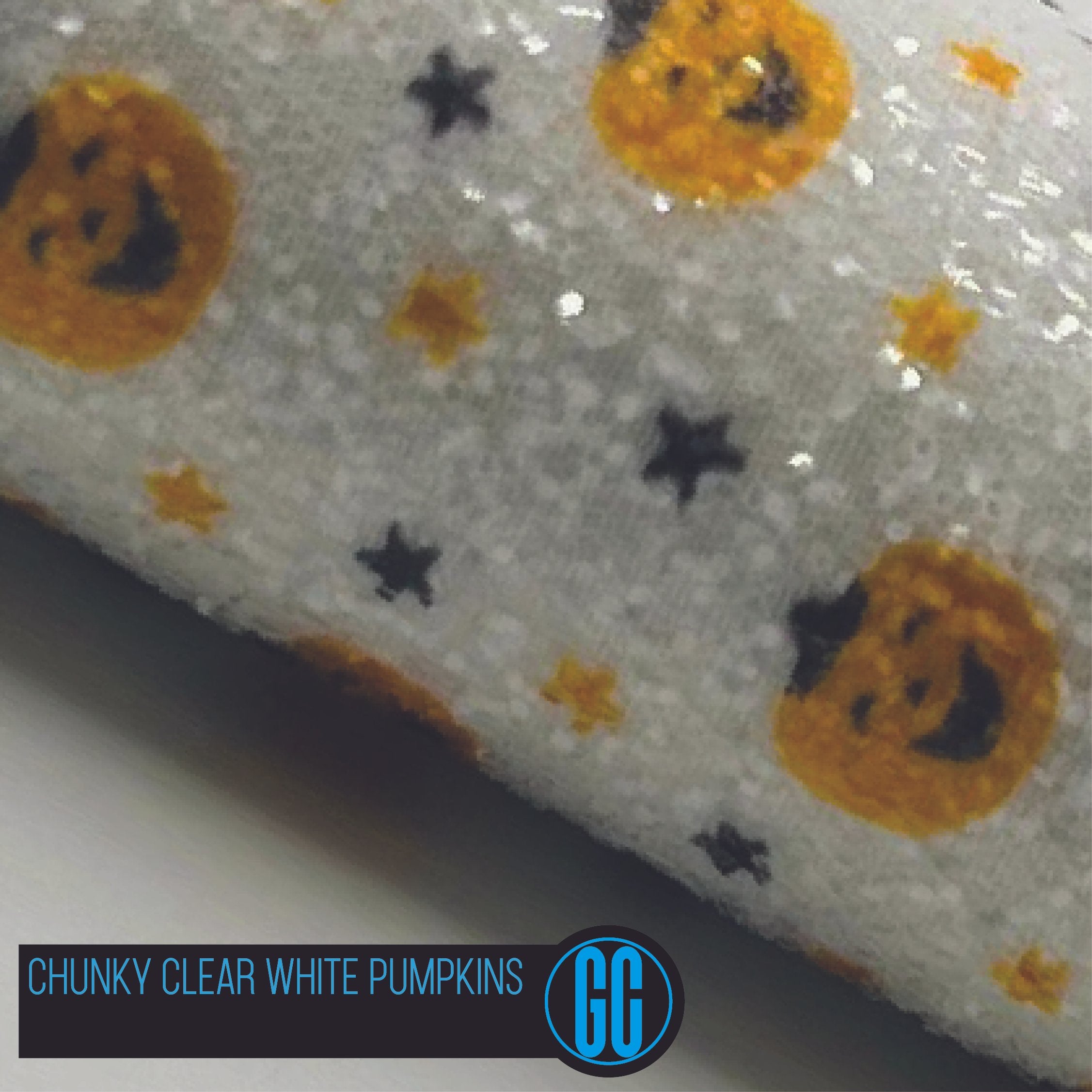 BLACK FRIDAY -+ A4 Size Clear White Glitter with Pumpkin Pattern Glitter Fabric