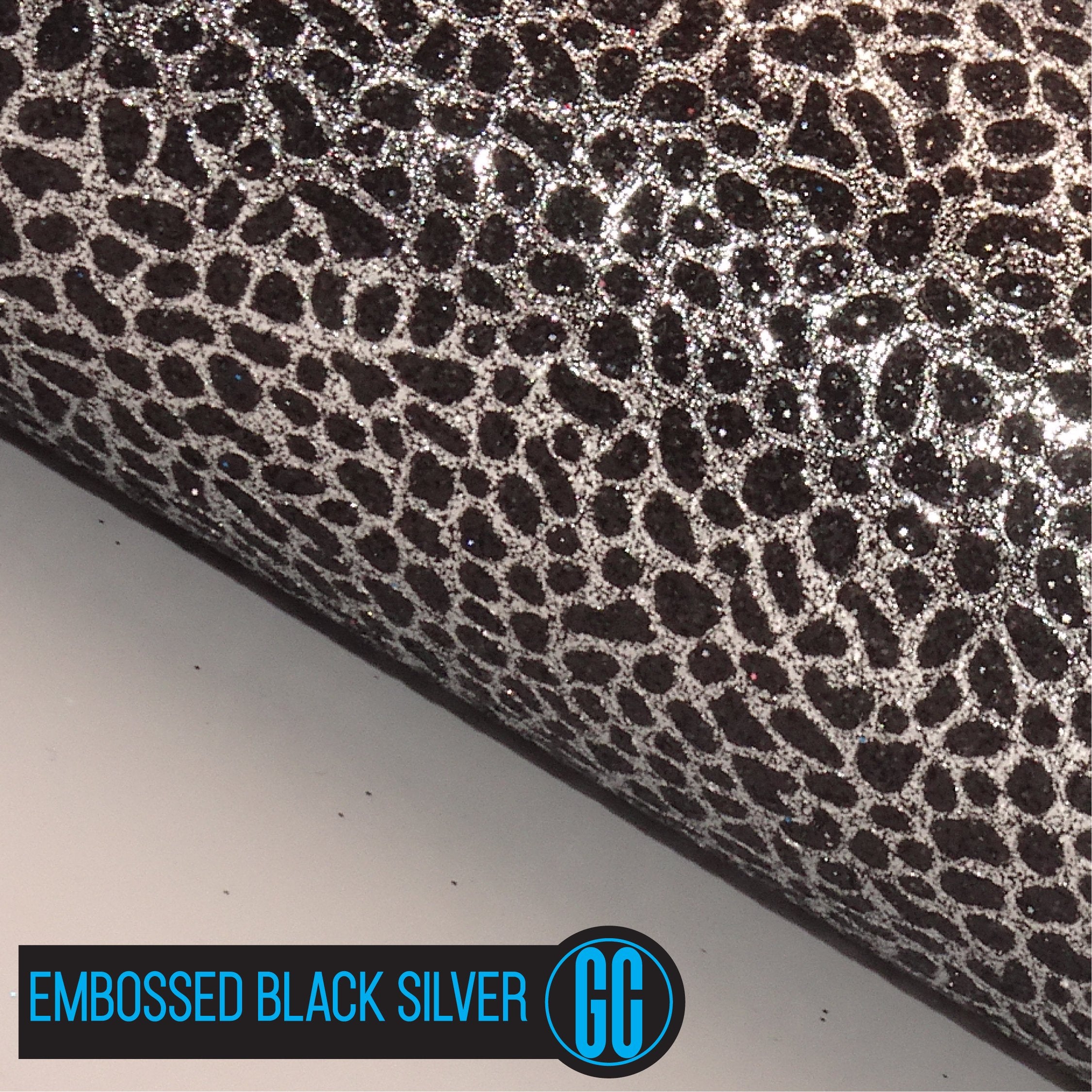 BLACK FRIDAY - A4 Size Fine Embossed Black Silver Glitter Fabric