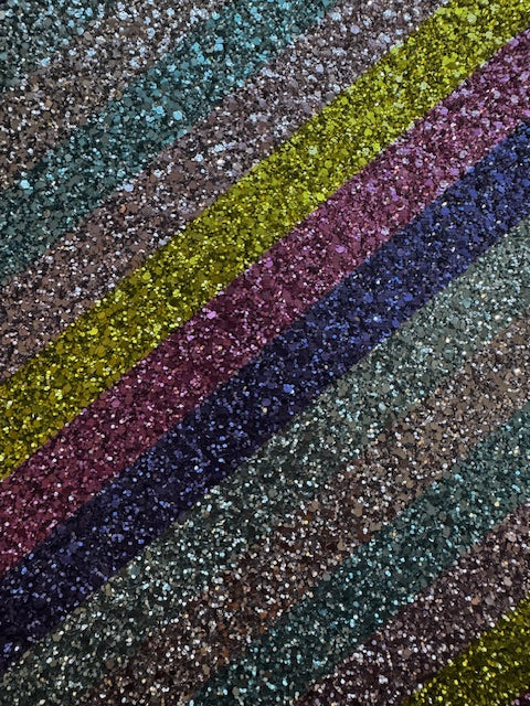 100% Cotton backed Large Pastel Stripe Glitter Fabric. Available in A4 Size