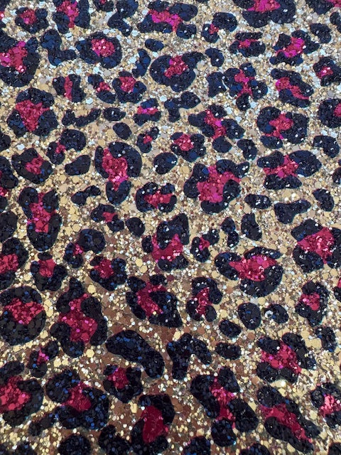 BLACK FRIDAY - A4 Size Lilac Purple Fuchsia Panther Printed Glitter Fabric