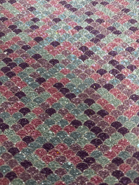 100% Cotton backed Rainbow Pastel Mermaid Printed Glitter Fabric. Available in A4 Size.
