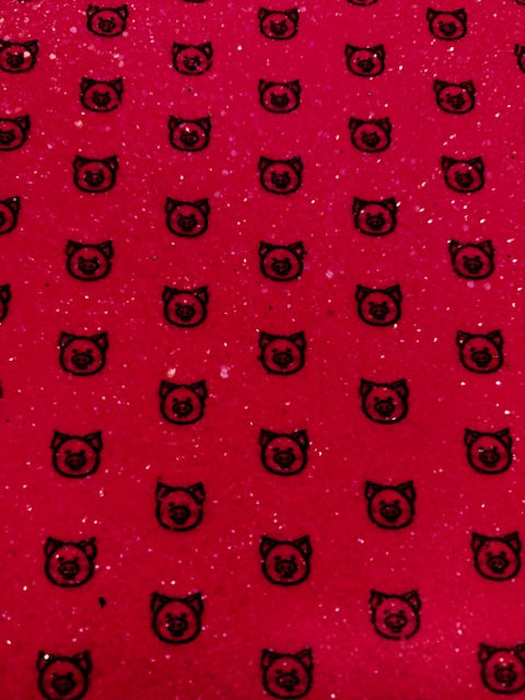 100% Cotton backed Chunky Flo Pink Piggies Printed Glitter Fabric. Available in A4 Size. Small faint print line fault which is present in the picture