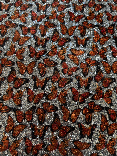 BLACK FRIDAY - A4 Size Silver Orange Butterfly Printed Glitter Fabric