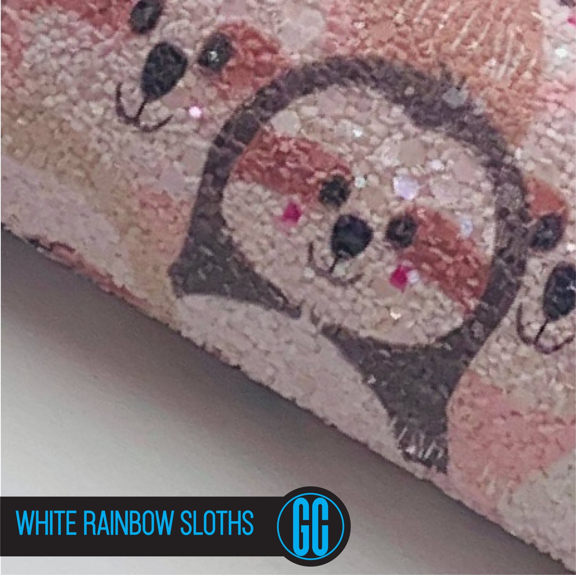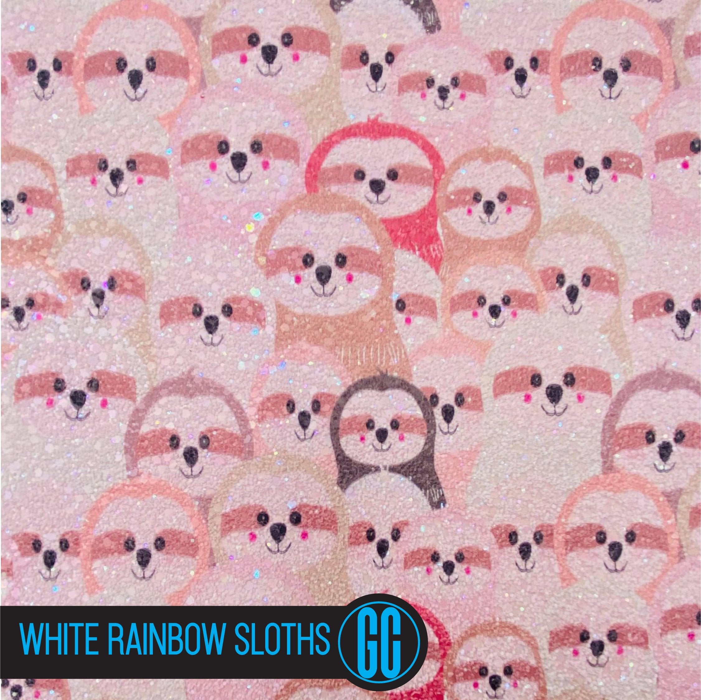 BLACK FRIDAY - A4 Size White Rainbow Sloths Glitter Fabric
