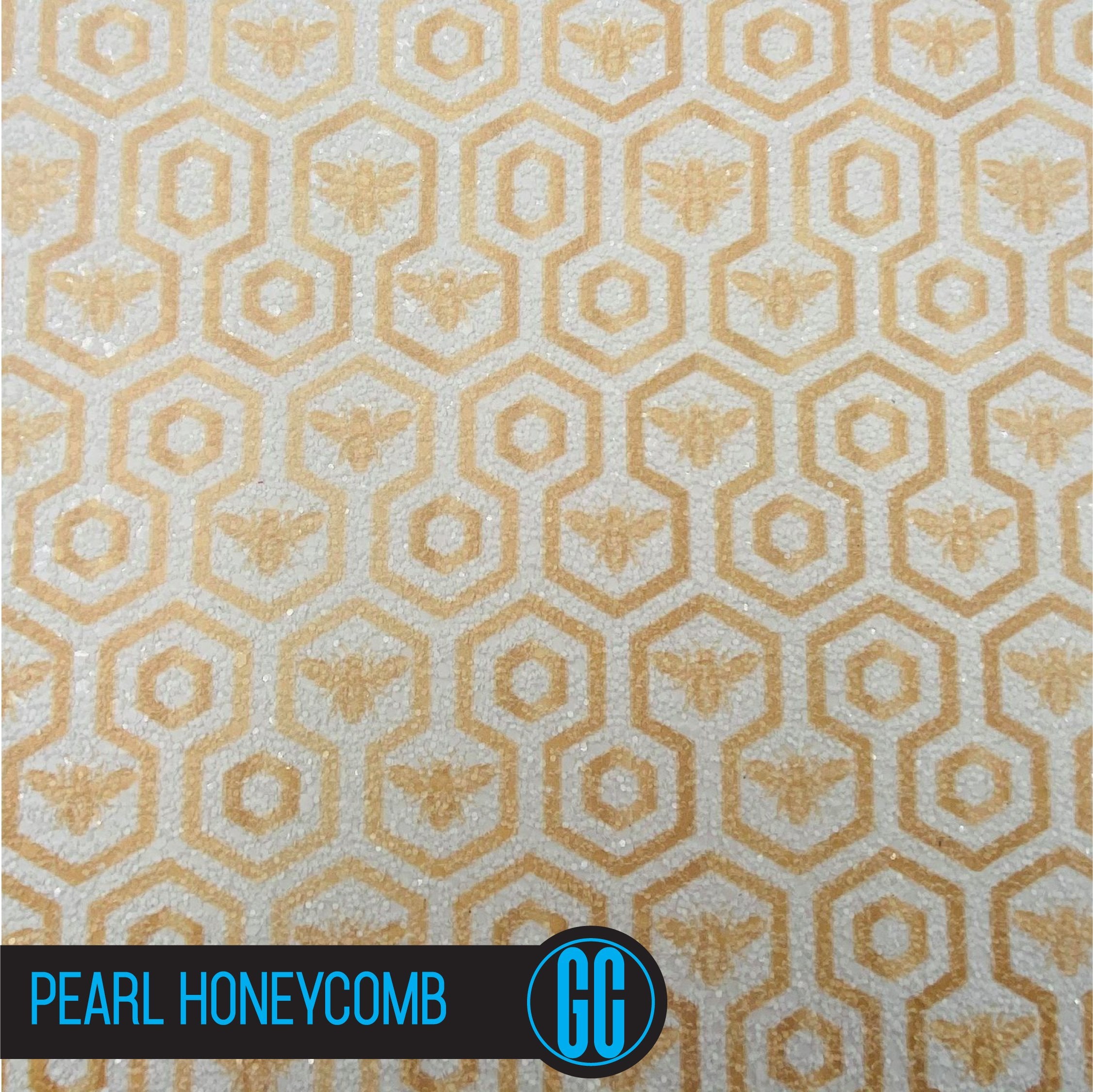 100% Cotton backed Pearl Honeycomb Printed Glitter Fabric. Available in A4 Size.