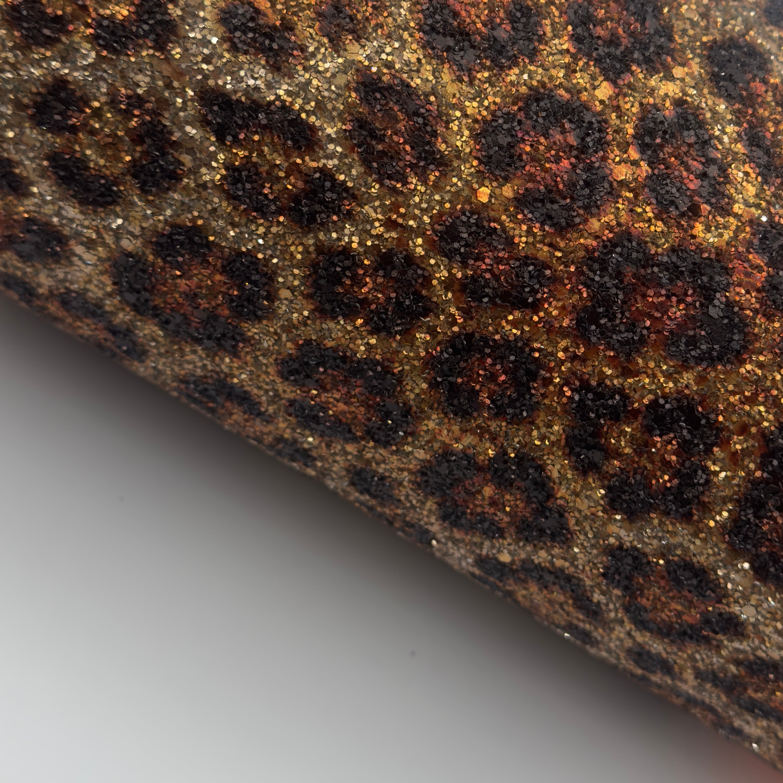 Bold, sleek and effortlessly powerful — our A4 Size Silver Panther Printed Glitter Fabric features a striking panther-inspired print layered over a shimmering silver glitter base. The rich, dark pattern contrasts beautifully with warm metallic tones, creating depth, texture and a fierce, fashion-forward look that feels both luxurious and timeless.