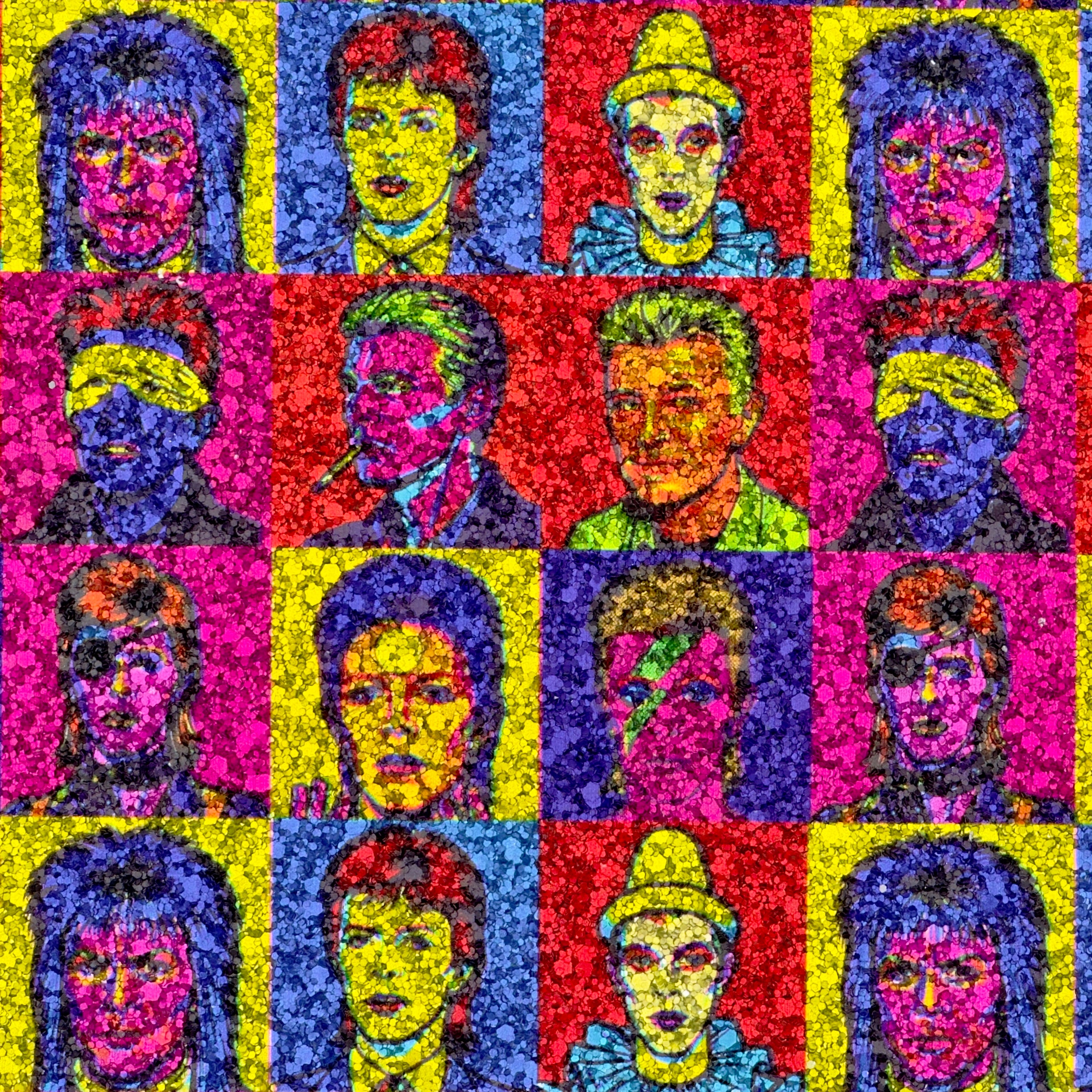 Design: Silver glitter base with multi-colour Alter Ego pop-art portrait print