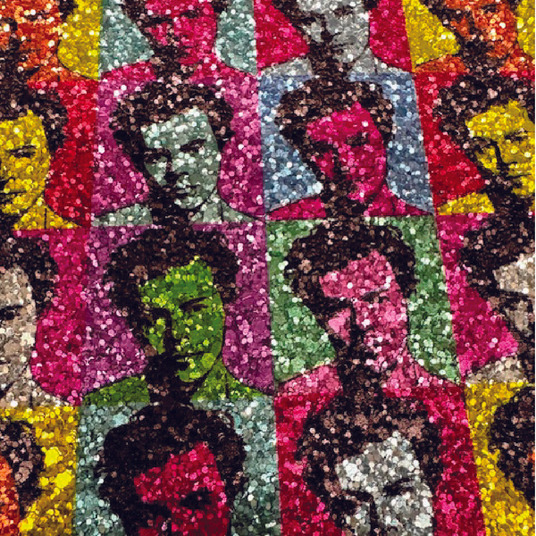 Design: Silver glitter base with multi-colour Harry pop-art print