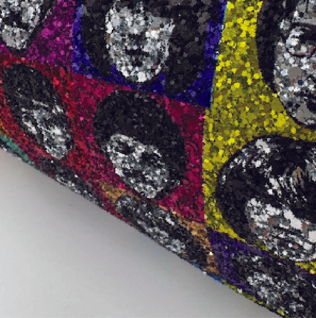 100% Cotton backed Silver Beatles Printed Glitter Fabric. Available in A4 Size.