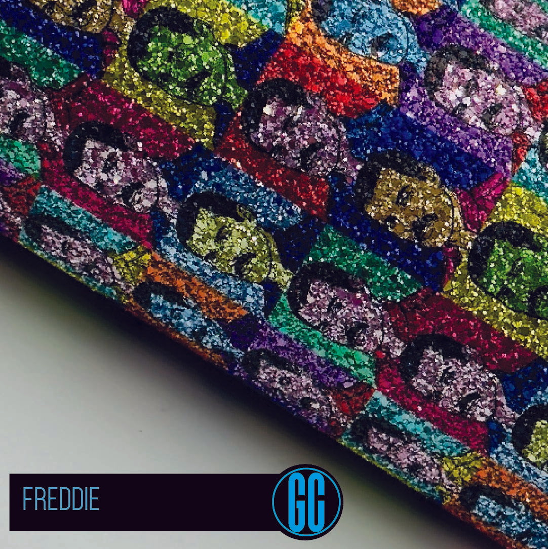 100% Cotton backed Silver Freddie Printed Glitter Fabric. Available in A4 Size.
